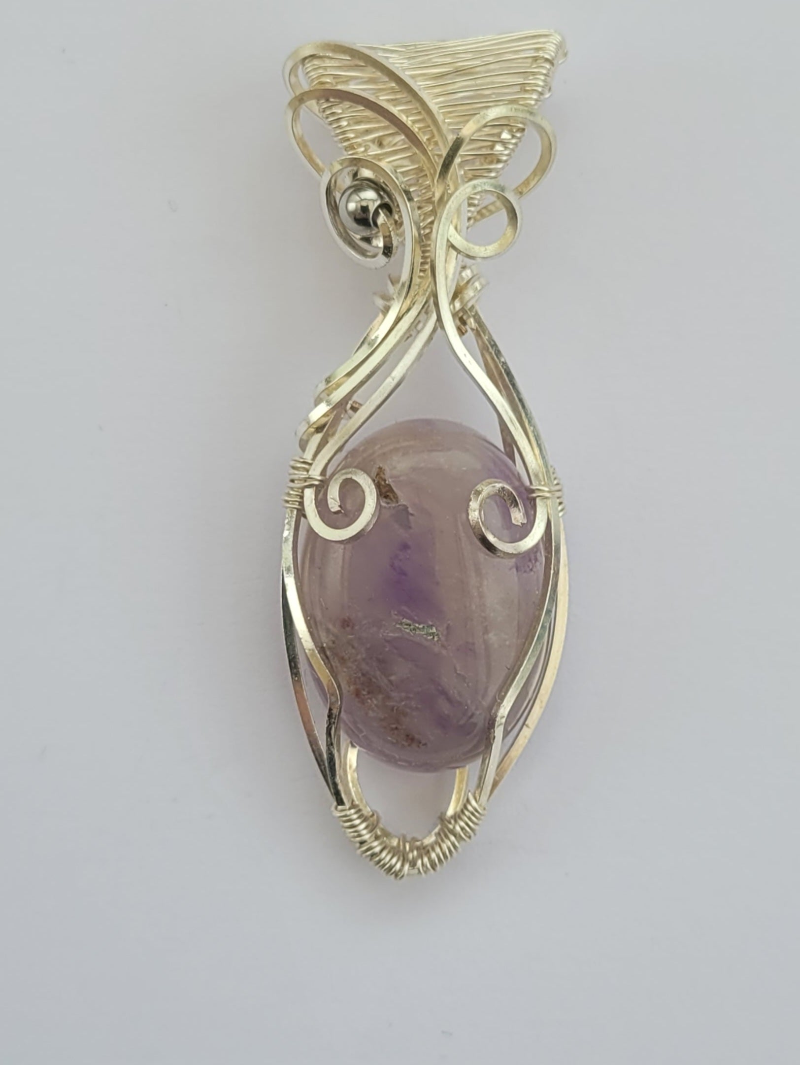 Pendentif en améthyste sur fils de cuivre argenté